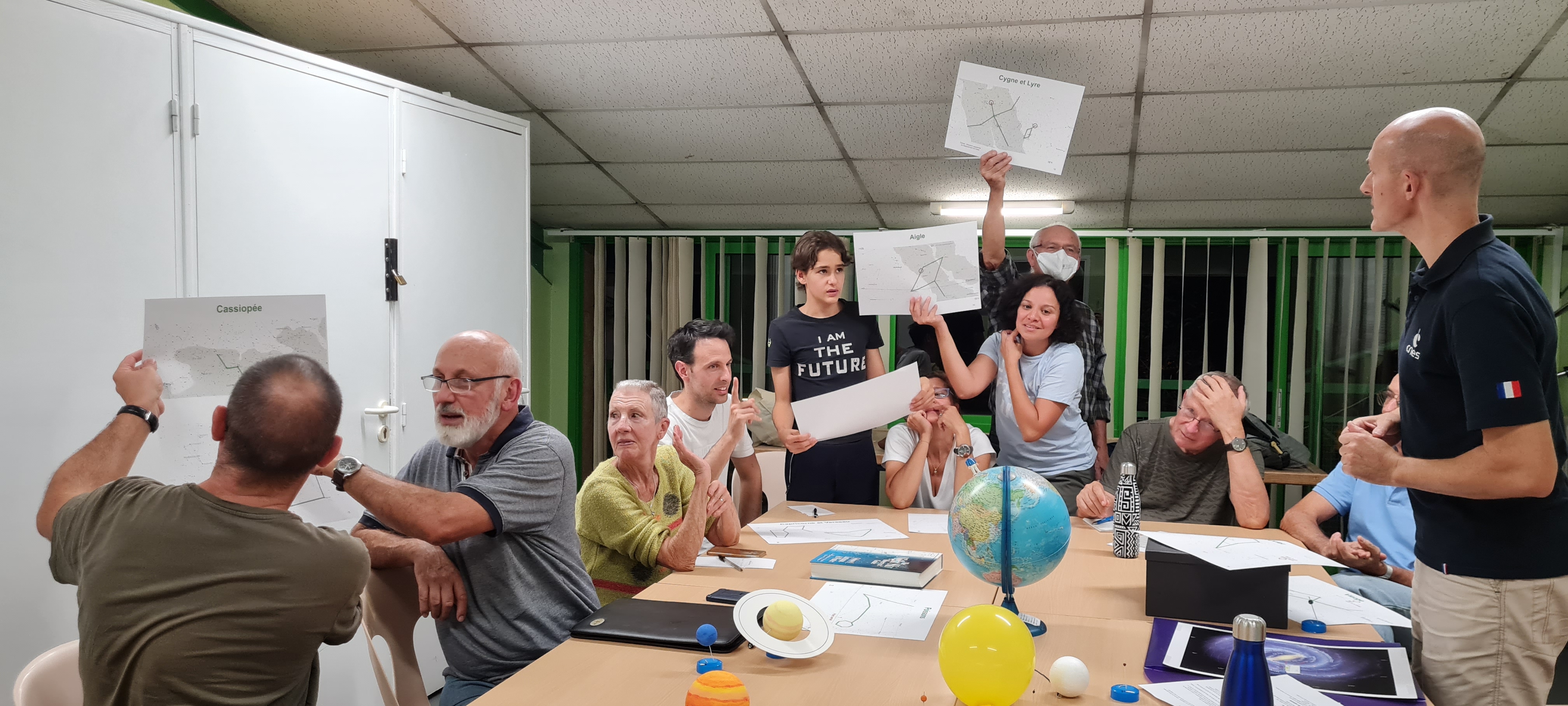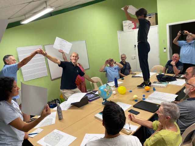 Animation ludique faite par Frédéric, sans écran ni ordinateur, qui permet d'aborder de nombreuses notions d'astronomie d'observation :