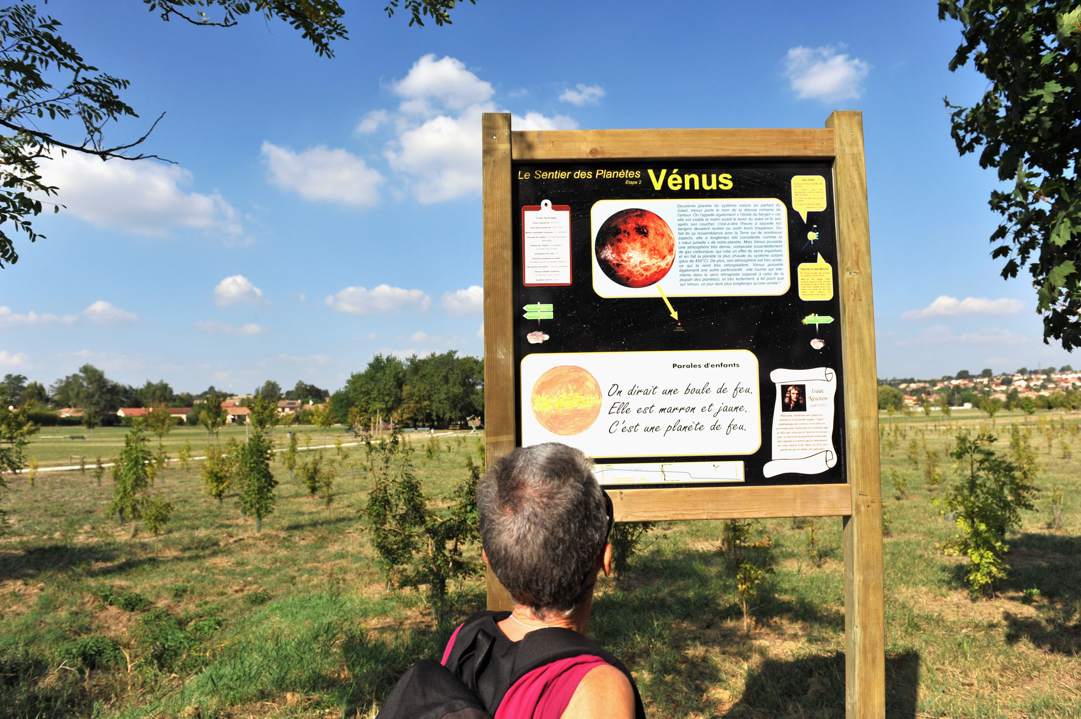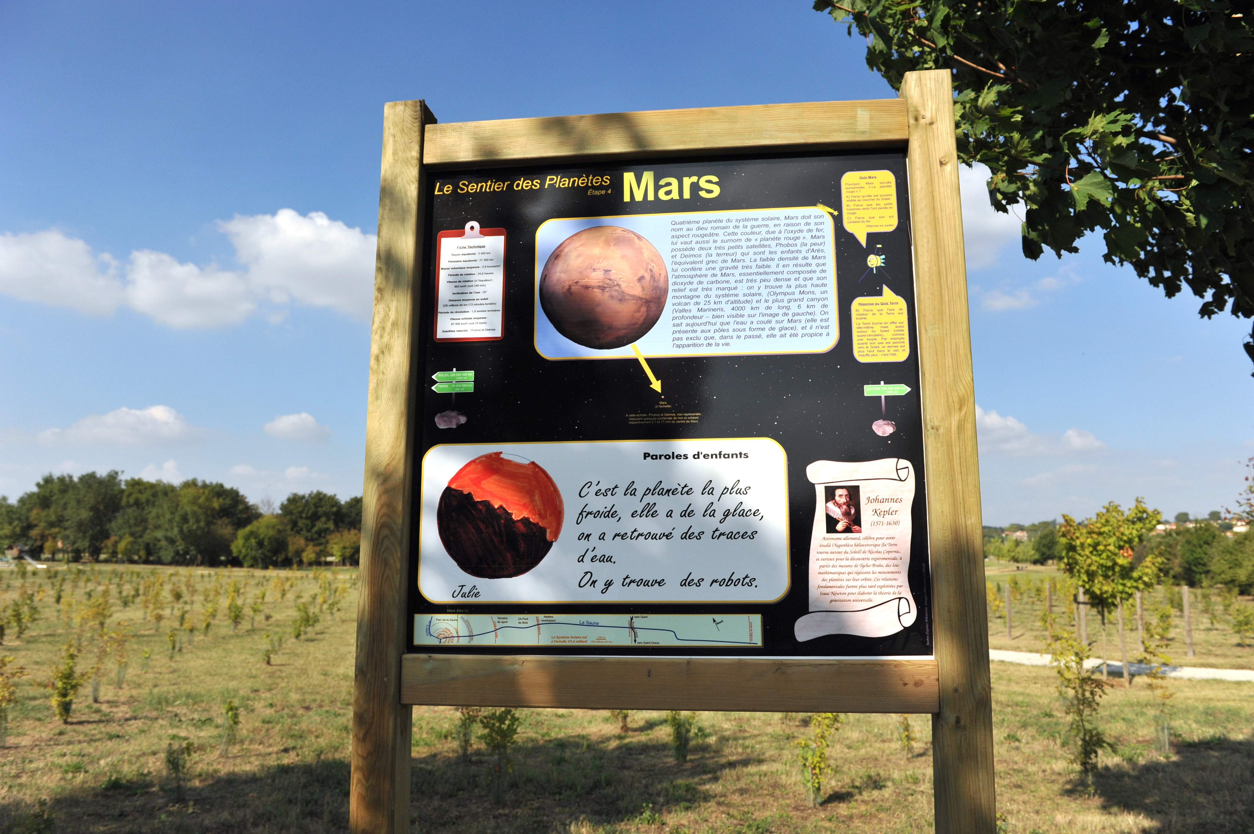 Vous pouvez télécharger et imprimer l'affichette du Sentier des Planètes, avec au dos des quiz pour tester vos connaissances !