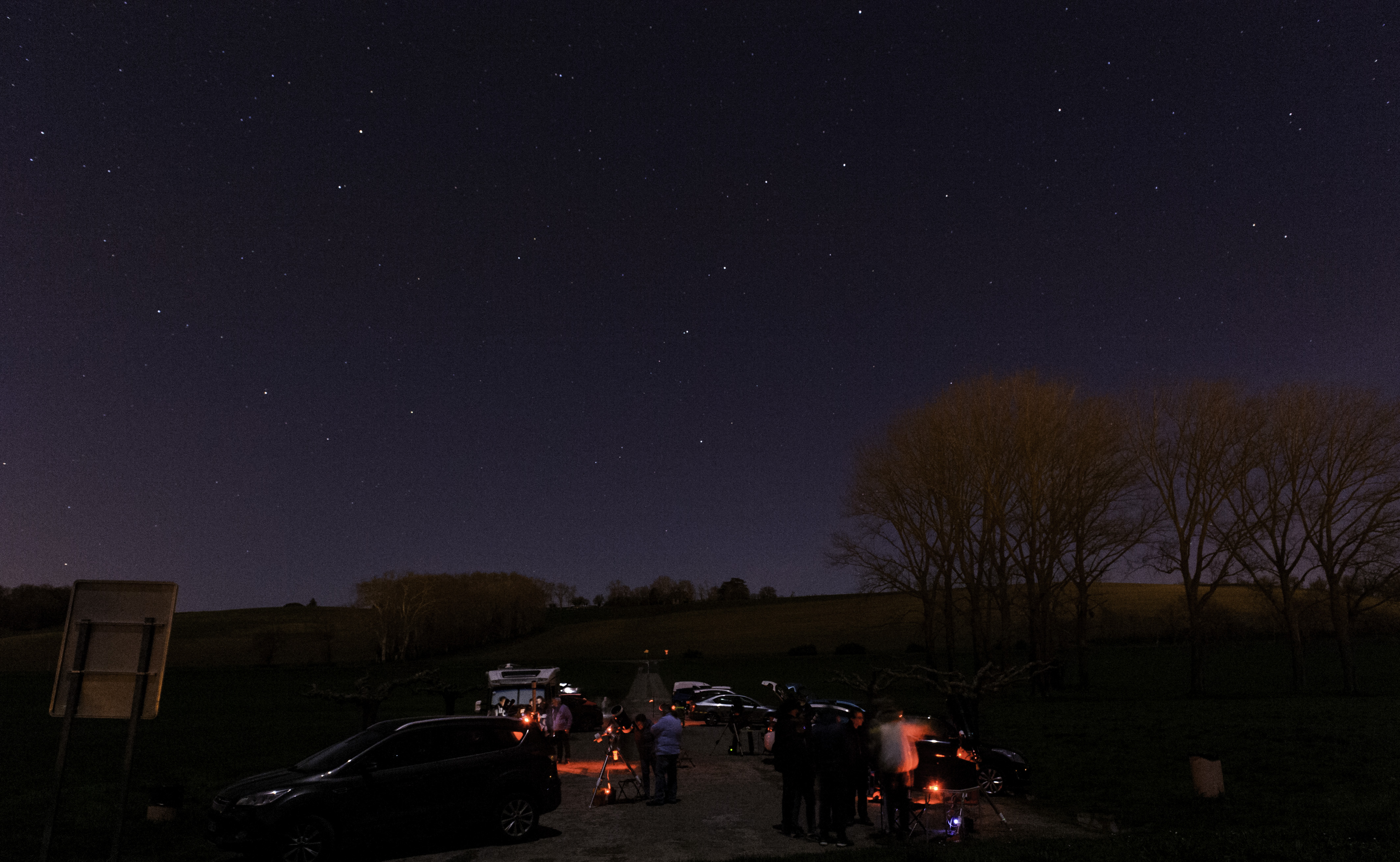 - Dobson 300 de David en visuel : Lune, Jupiter, M42, M31, M81 et M82, M44, M45, Rigel, Bételgeuse, Sirius. M1 et la Flamme non discernables à cause de la pollution lumineuse et de la Lune.