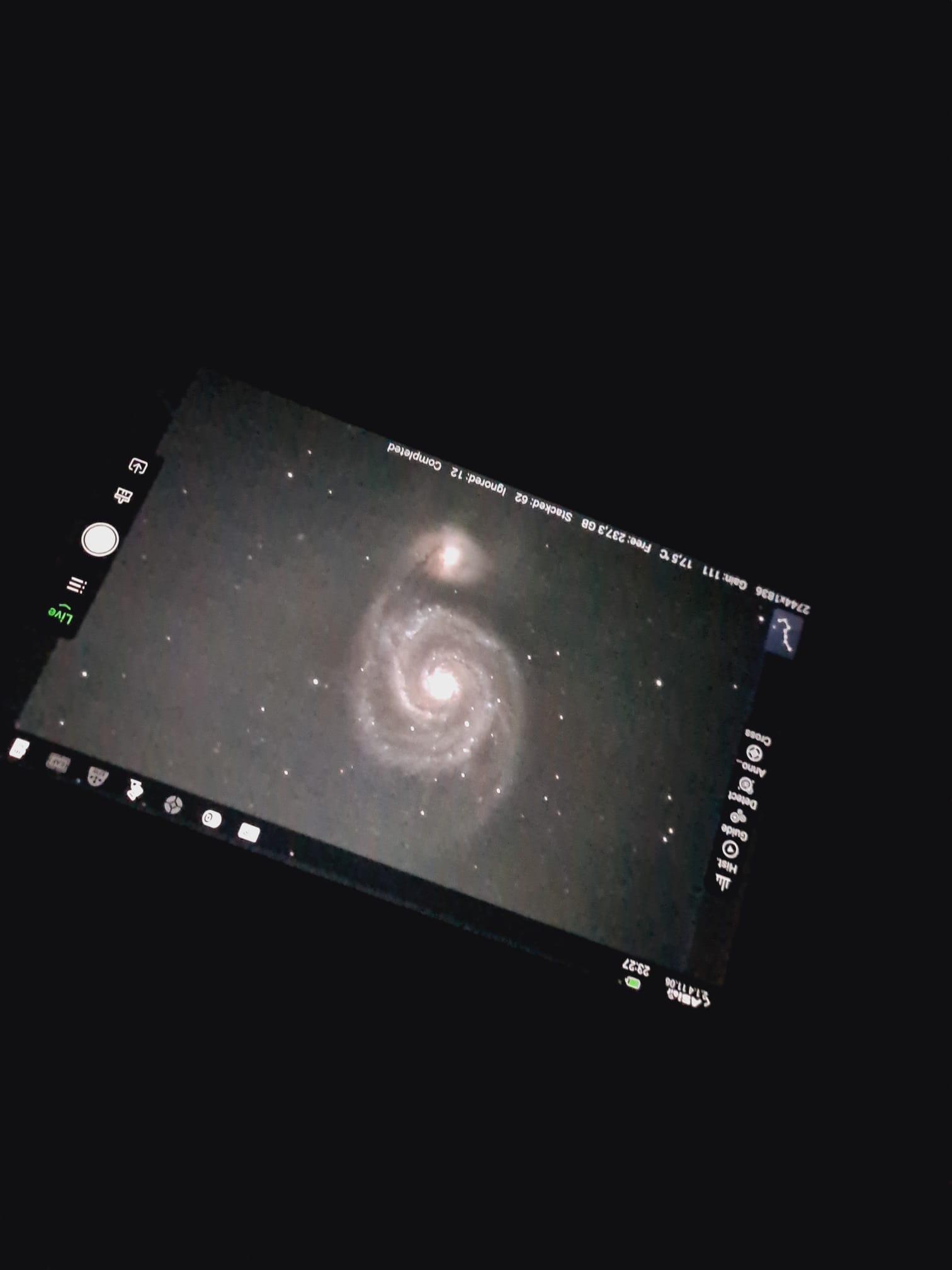 - Michel : live stacking avec asiair : galaxie de Bode (1 seule image) puis M51