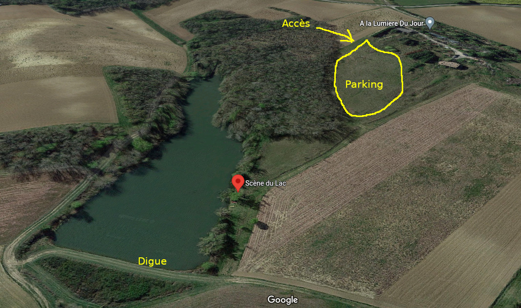 - Un chemin près de la digue : à 100 mètres vers le nord, il offre une vue dégagée pour les observations. Trop loin pour l'électricité, prévoir d'être autonome. Vue dégagée à 360 degrés, environ 10 degrés vers le sud.