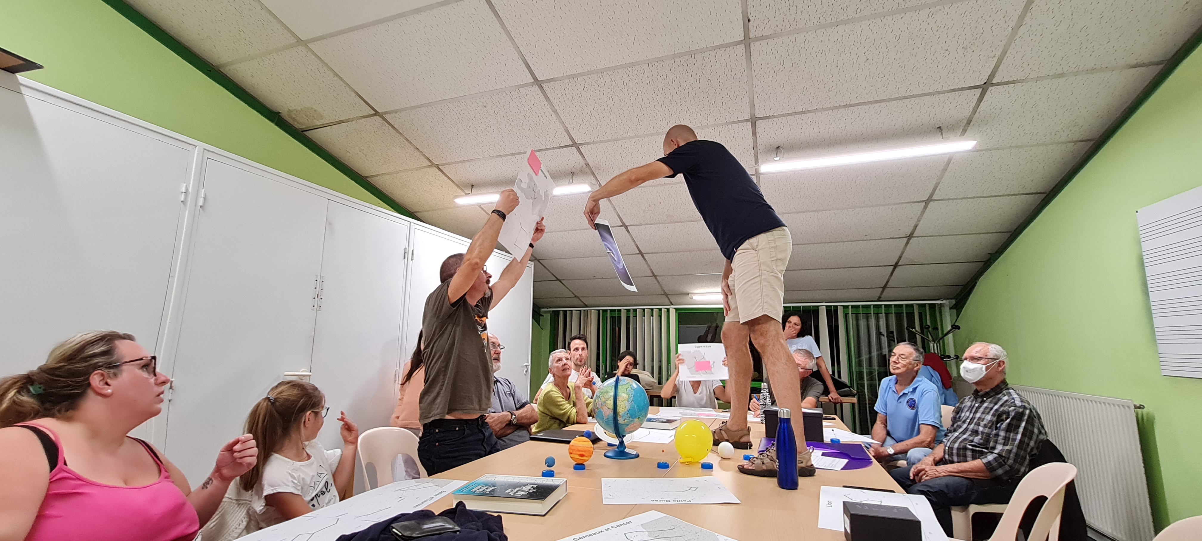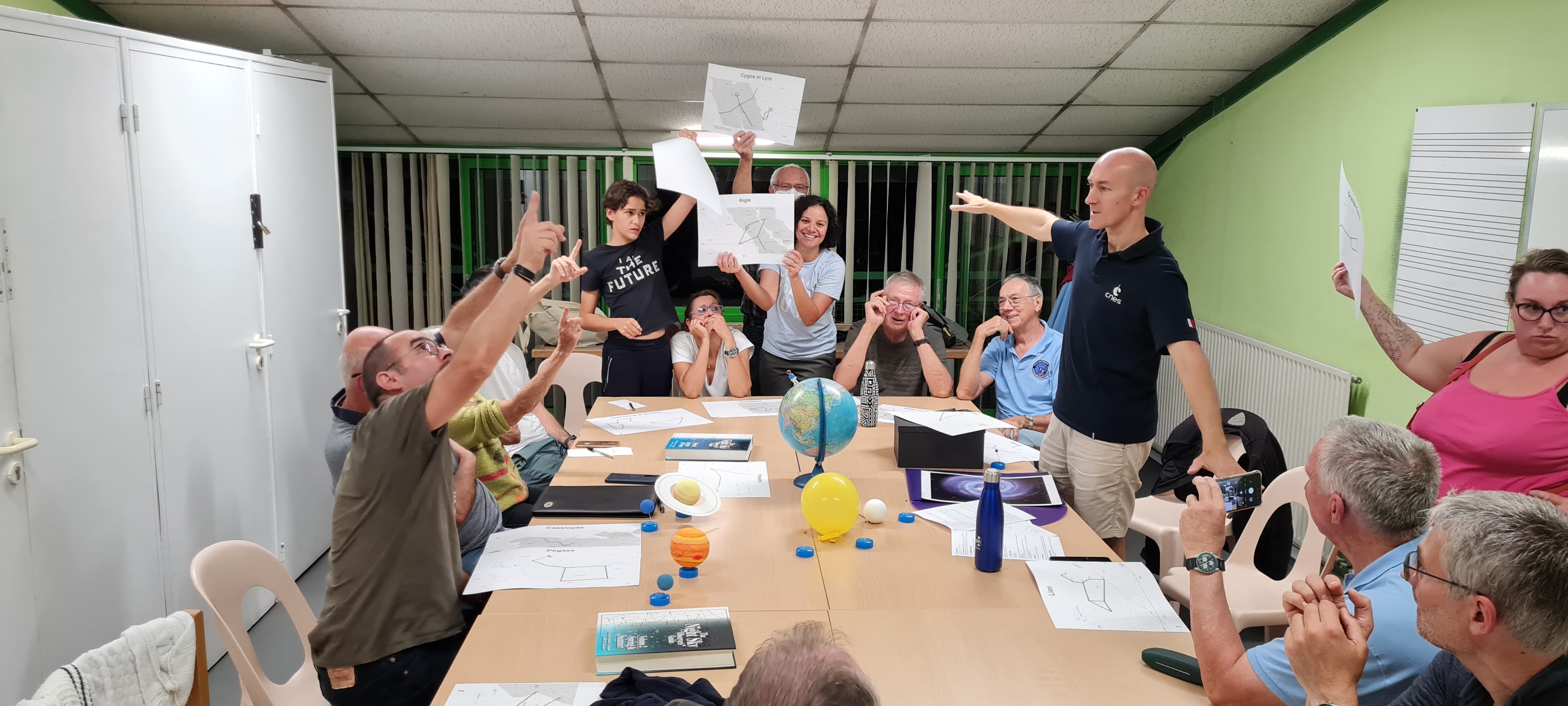 Animation ludique faite par Frédéric, sans écran ni ordinateur, qui permet d'aborder de nombreuses notions d'astronomie d'observation :