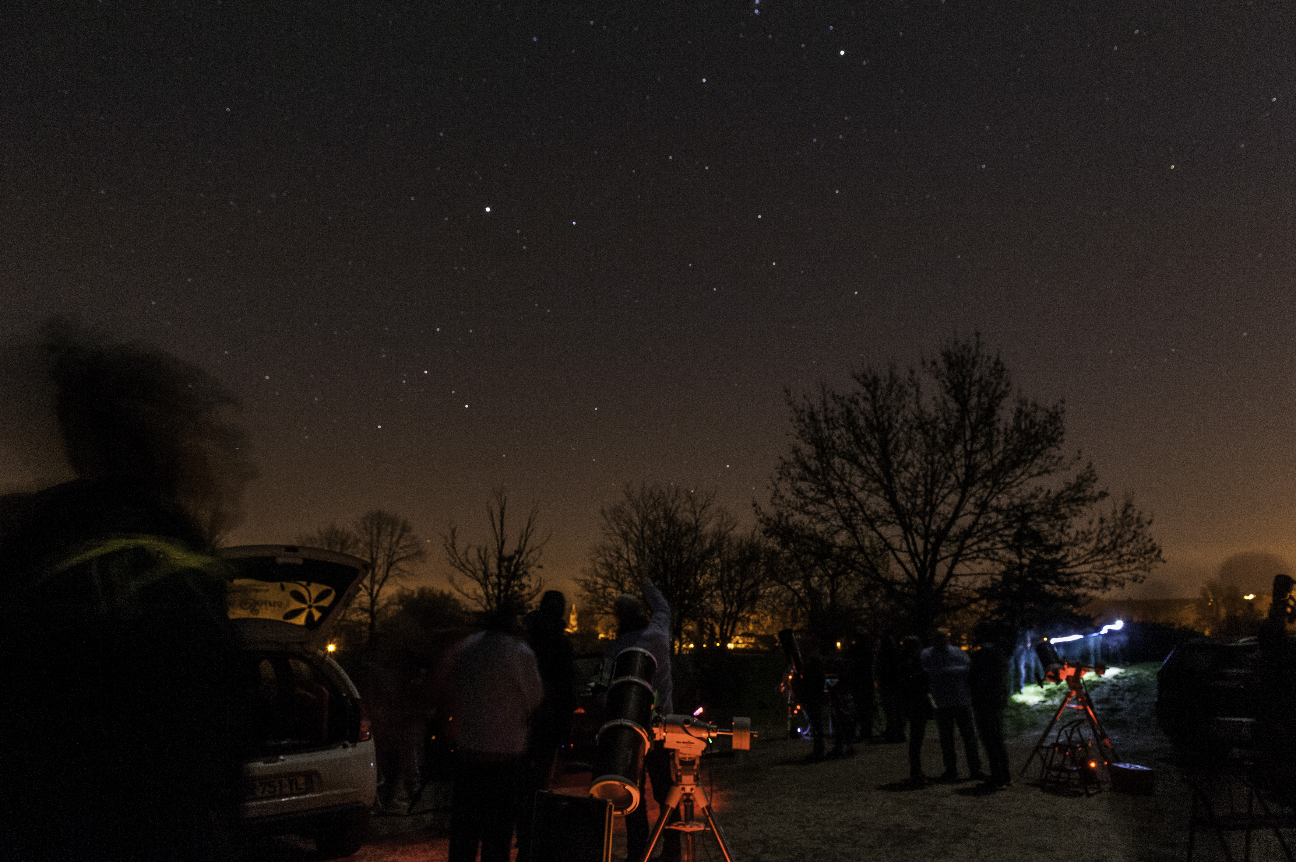 - Dobson 300 de David en visuel : Lune, Jupiter, M42, M31, M81 et M82, M44, M45, Rigel, Bételgeuse, Sirius. M1 et la Flamme non discernables à cause de la pollution lumineuse et de la Lune.